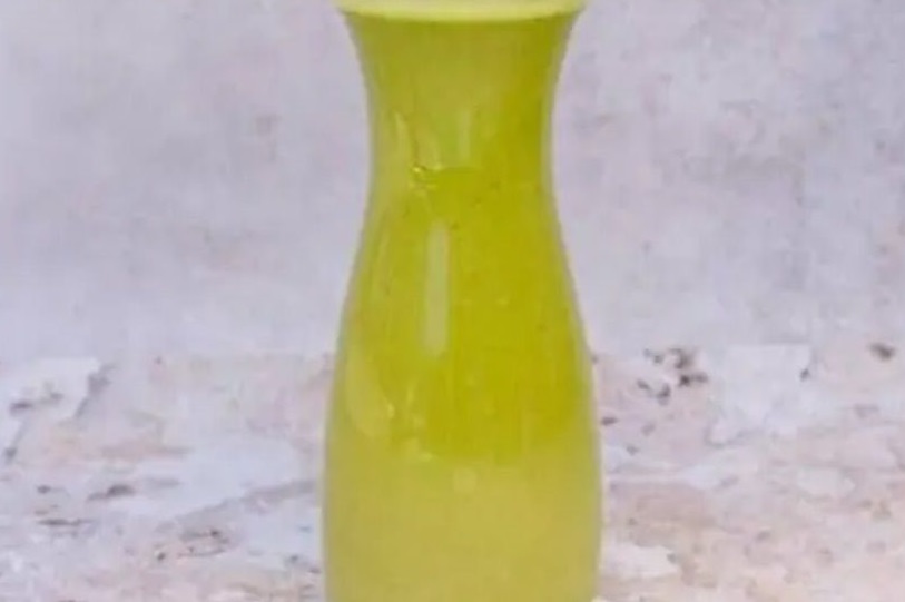 Jugo de apio, pepino, limón, jengibre, espinaca, manzana verde, perejil y chía.