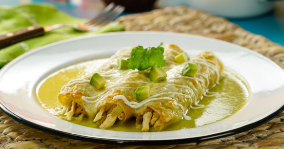 Pollo, queso, crema cebolla, jitomate, aguacate.