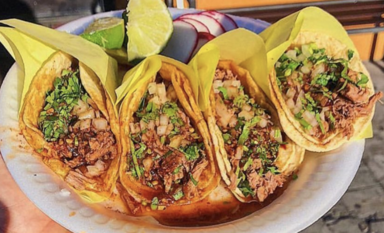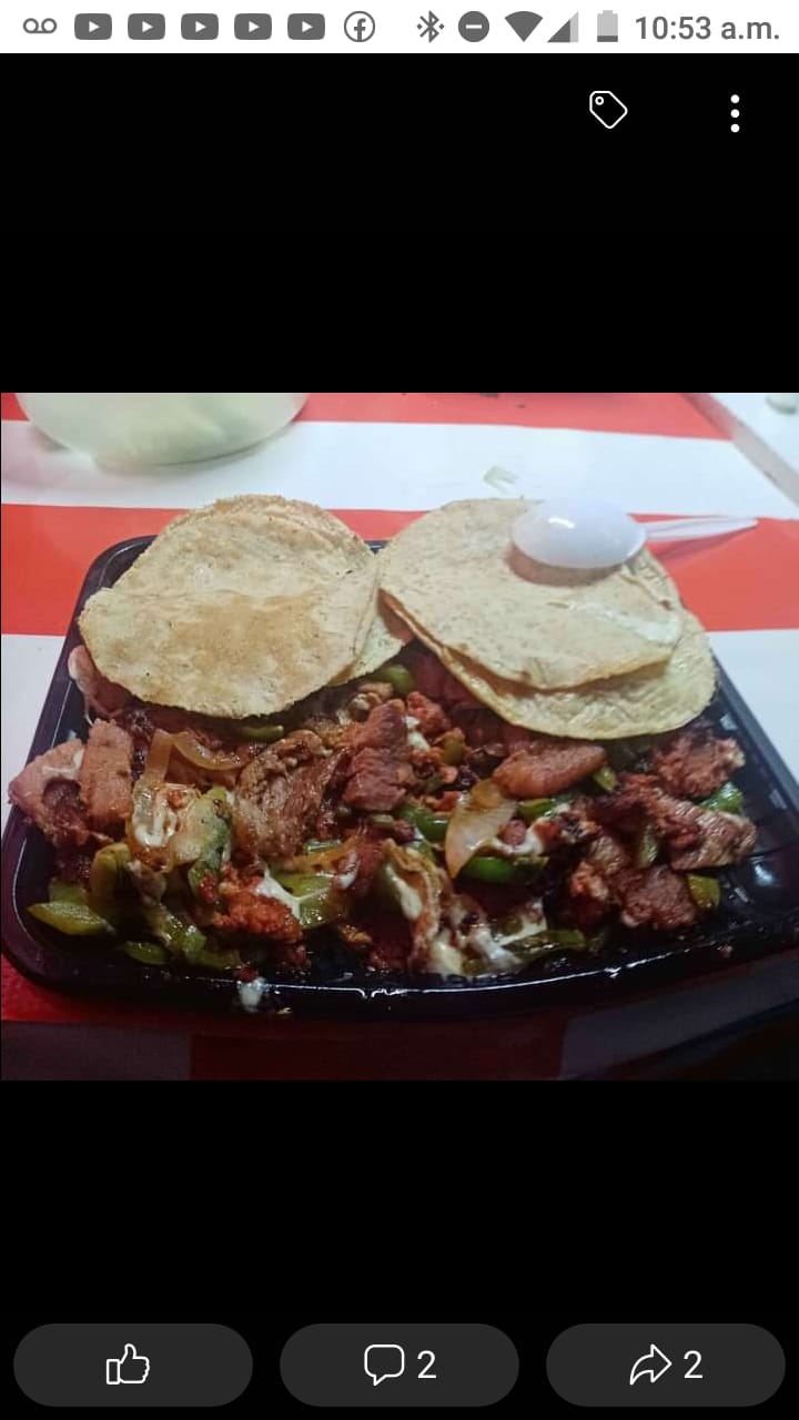 Carne de res, cebolla, cilantro, limones, tortillas, salsa roja, 1 lt. de consomé y refresco de 2 lts.