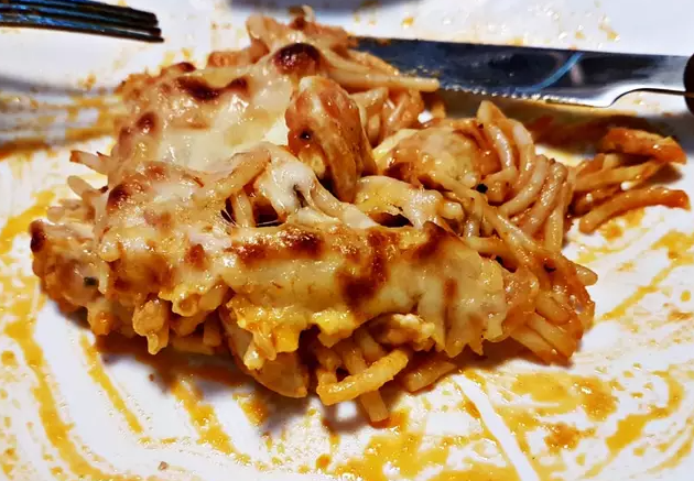 Dos pechugas rellenas, spagheti para dos personas, dos refrescos y ensalada