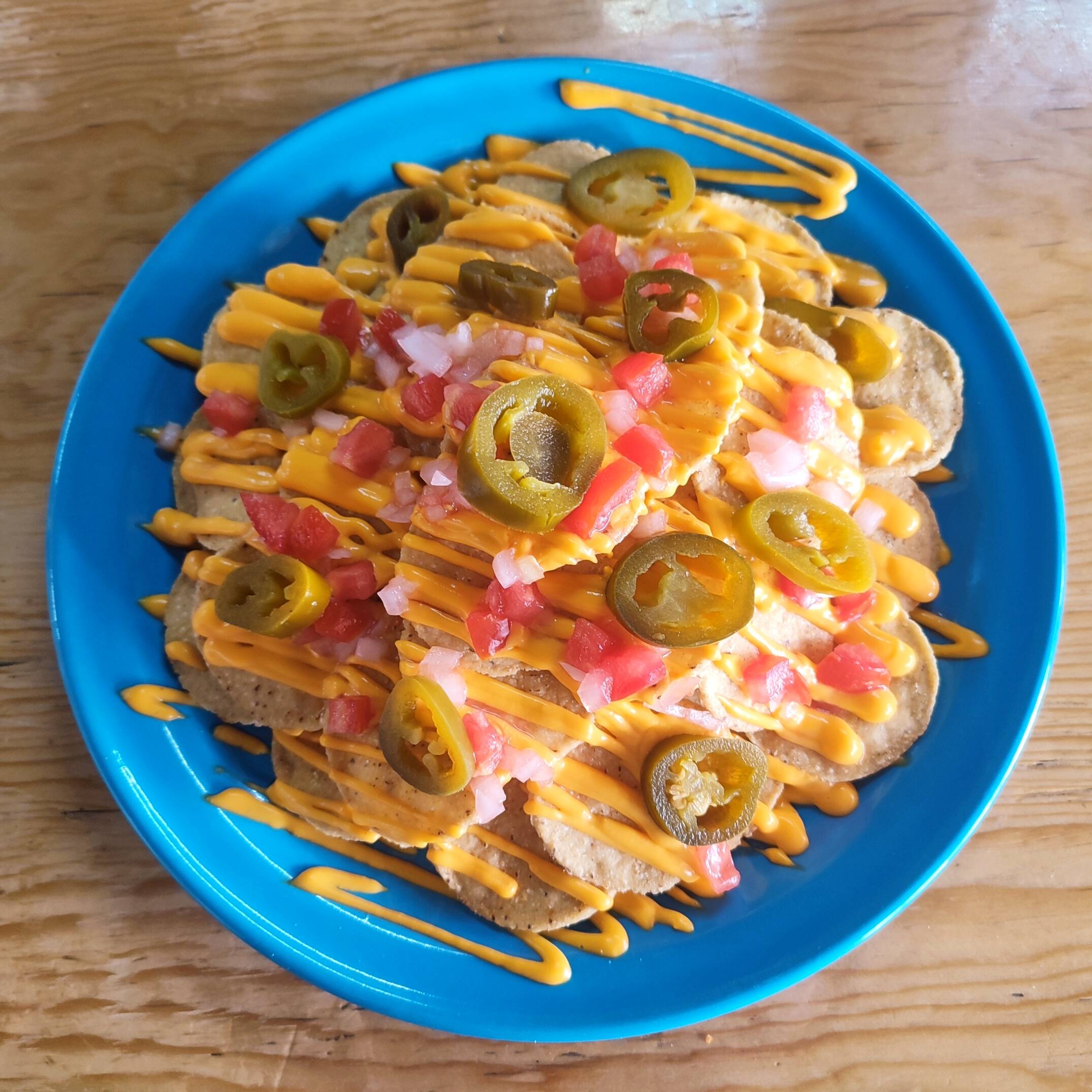 Orden de Nachos (150g) con Queso Amarillo, Jalapeños y Pico de Gallo. (Catsup y Salsa Valentina).