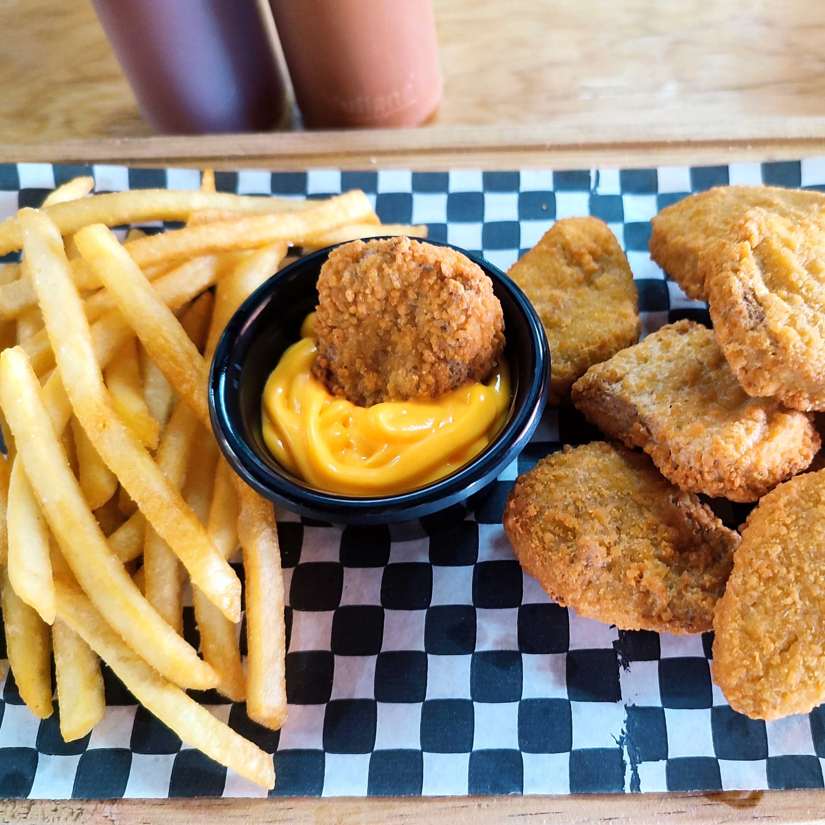 Orden de 10 Nuggets acompañados por Papas a la Francesa (Catsup, Queso Amarillo y Salsa valentina aparte).
