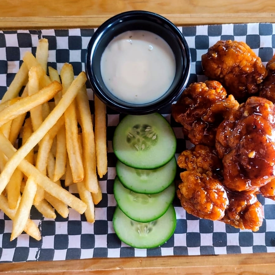 220g de Boneless aderezados con la salsa de tu preferencia. Acompañados de Papas a la Francesa (Aderezo Rancho aparte).