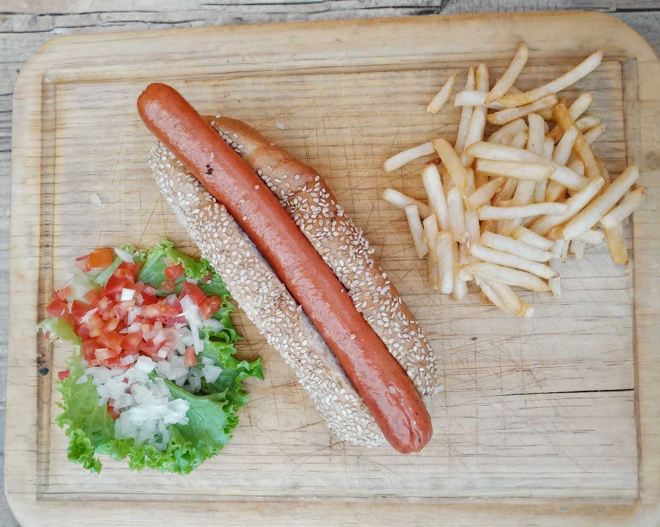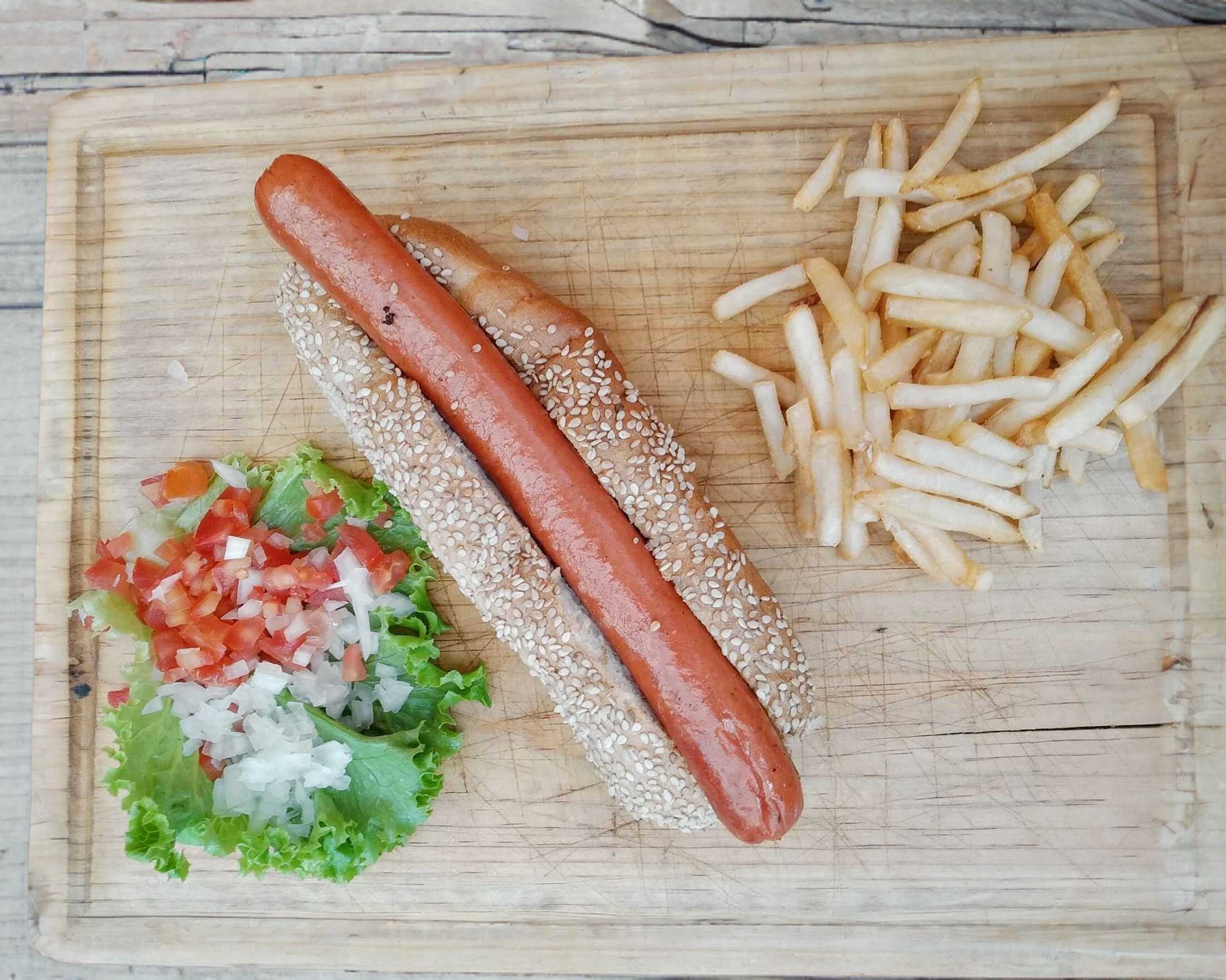 160 Grs. jugosa salchicha especiada de consistencia firme, se acompaña de dos guarniciones a elegir: papas hervidas, papas fritas, arroz, pasta, semmel knödel, col agria, puré de papa, verduras al vapor, ensalada de papa, papa alemana, verduras a la mantequilla, papa al horno.