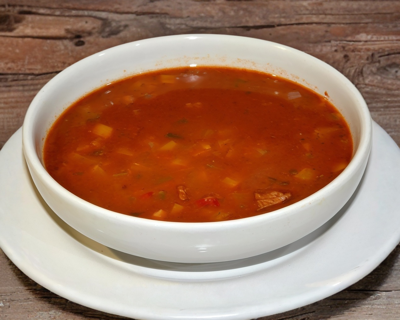450 Ml. carne de res frita en caldillo de jitomate con pimientos y especies.