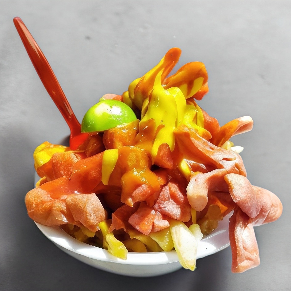 Sopa instantánea con Granos de Elote, mayonesa, chile en polvo, queso y un toque de limón. Se manda en un tazón de 500ml para una persona