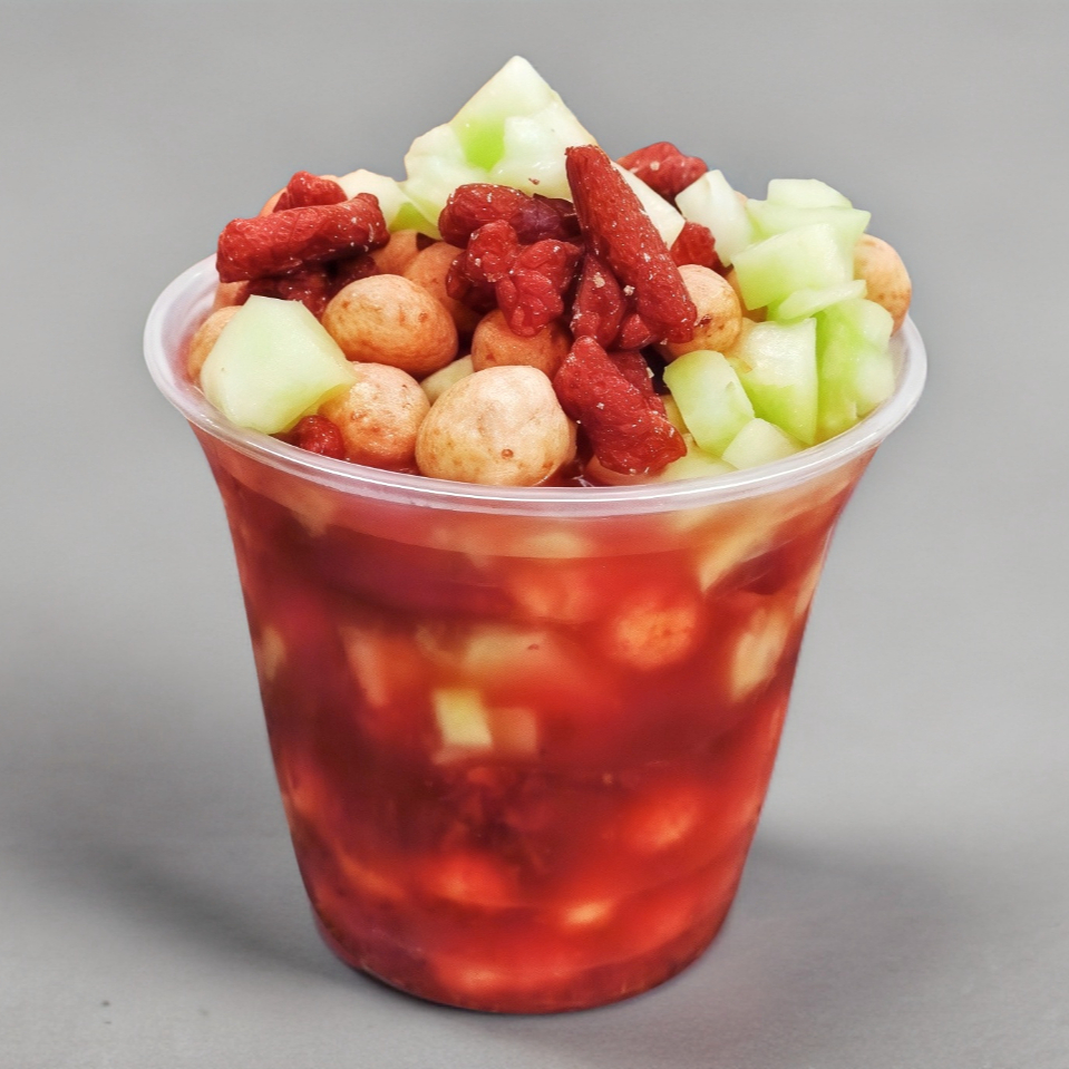 Doritos o fritura de tu elección, preparado con cueritos de marrano, zanahoria pepino cacahuates