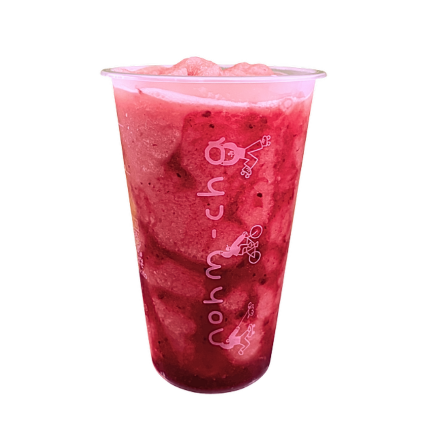 Bebida frappé elaborada con base de té verde jazmín, acompañada de pulpa natural de bayas rojos.
