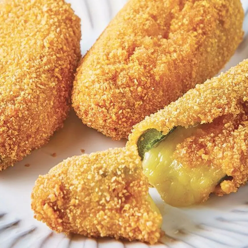 6 piezas de jalapeños de queso acompañados con un dip de salsa de la casa