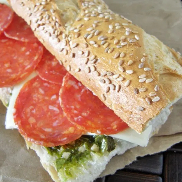 pan artesanal con lechuga, jitomate, cebolla, pepperoni y queso mozzarella