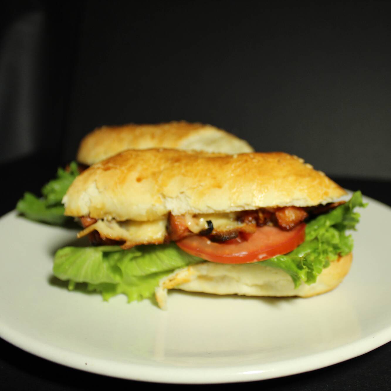 pan artesanal con lechuga, jitomate, cebolla, pollo asado y queso americano.