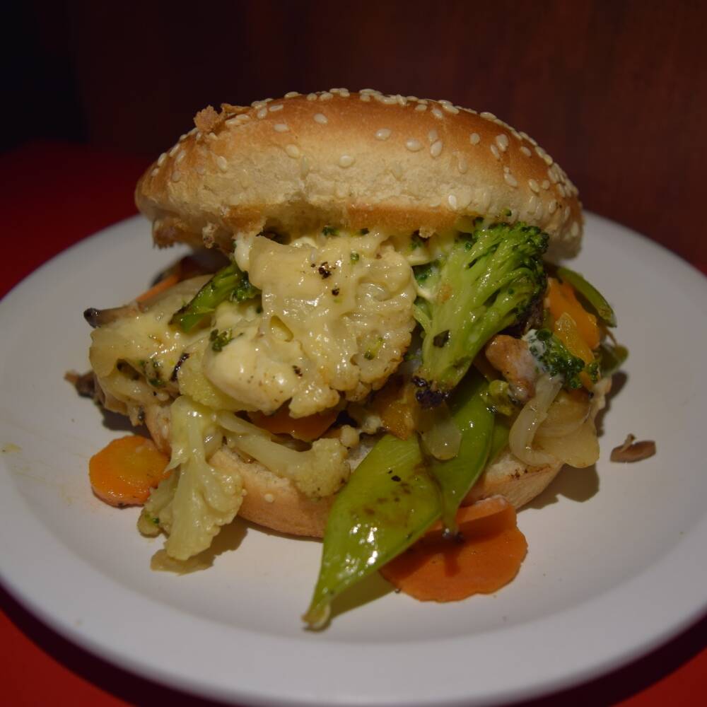 pan artesanal con mezcla de vegetales salteados con mantequilla y queso mozzarella