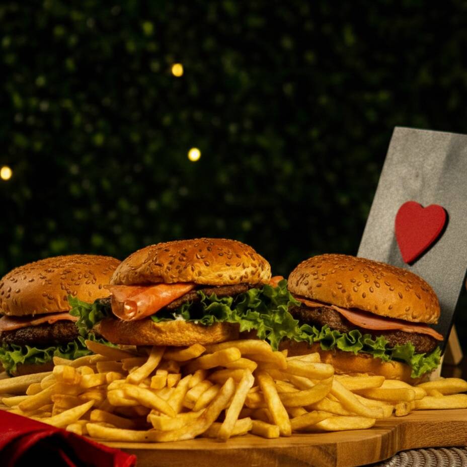 3 hamburguesas sencillas con papas + 1 refresco de 2L