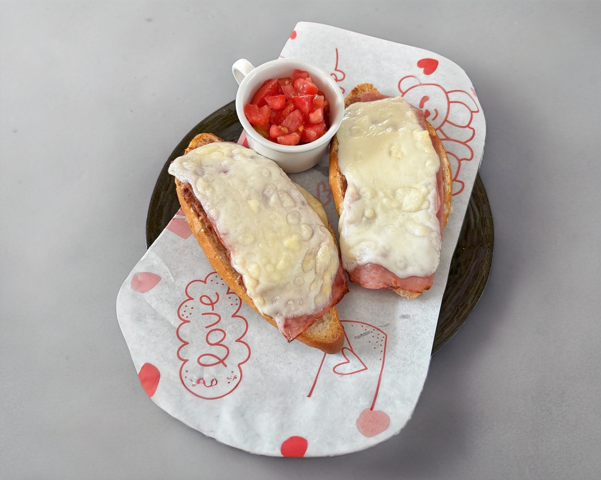 Jamón + queso manchego + pico de gallo.