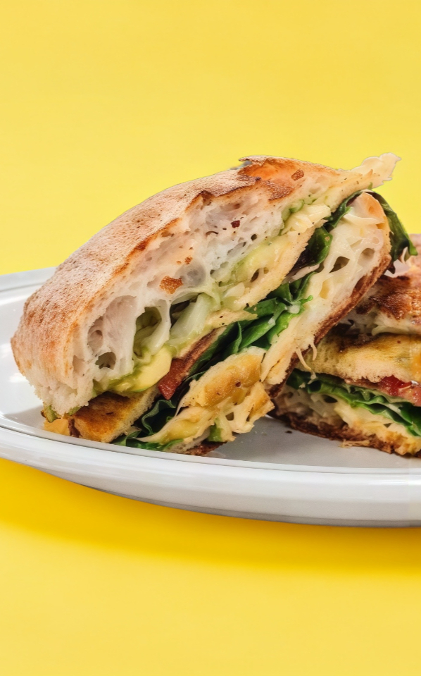 Jamón de pavo, queso manchego, lechuga y jitomate.