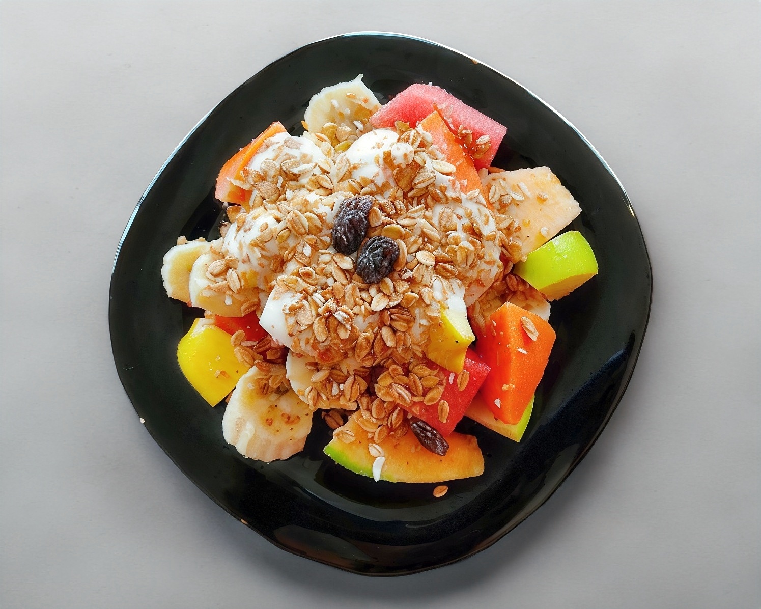 Fruta picada + chantillí + granola y miel.