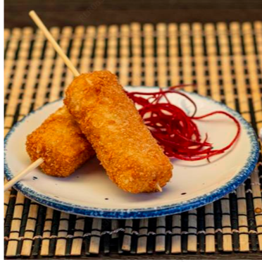 Brochetas empanizadas. Contiene mariscos 🦐.