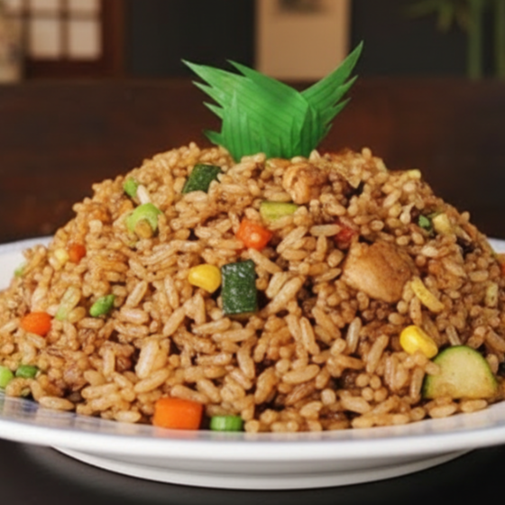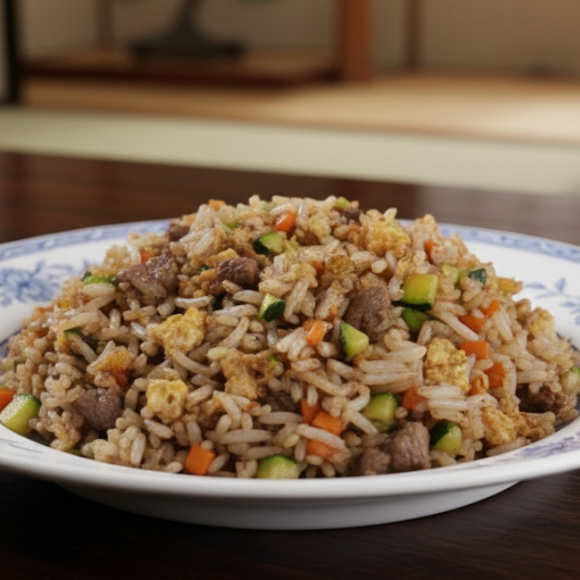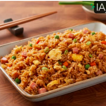 Arroz frito, sazonado al wok con verduras y huevo. Yakimeshi: huevos esponjosos, jamón sabroso y un toque de salsa de soya que carameliza a la perfección.