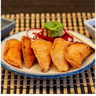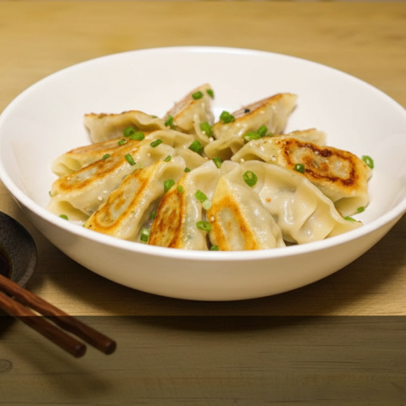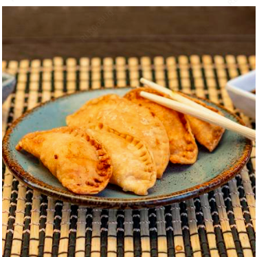 Típica empanadilla japonesa, frita o al vapor. Contiene mariscos 🦐.