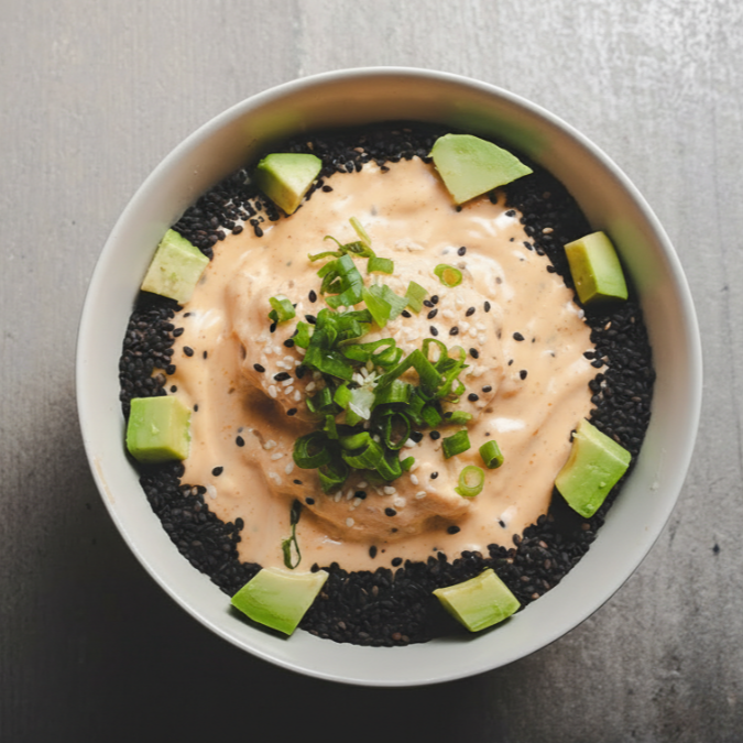 Espinaca, queso crema, aguacate, salmón y aderezo chipotle. Contiene pescado 🐟. Picante 🌶️.