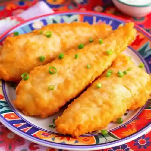 Tres filetes de pescado fritos al estilo casero, doraditos por fuera y suaves por dentro.