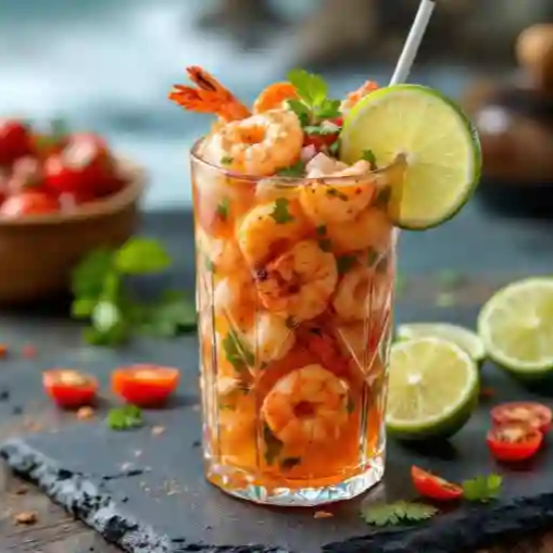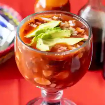 Coctel tradicional preparado con una mezcla de camarón cocido, pulpo, jaiba y ostiones, servido en su jugo con jitomate, cebolla, cilantro, pepino, limón y un toque de picante.