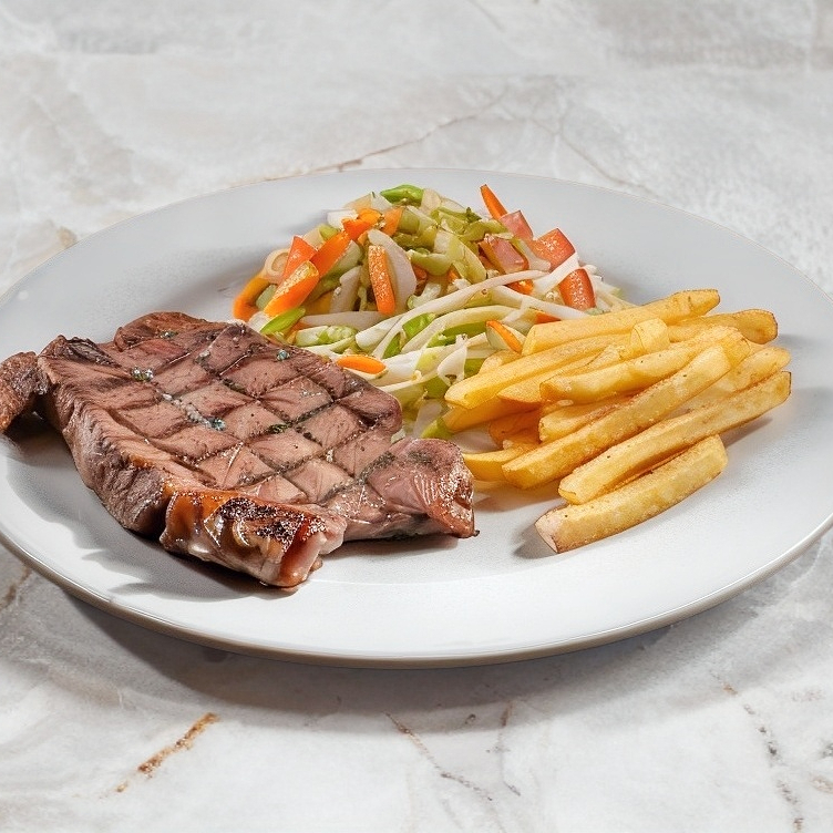 New York 350 g acompañado de papas a la francesa o ensalada mixta.