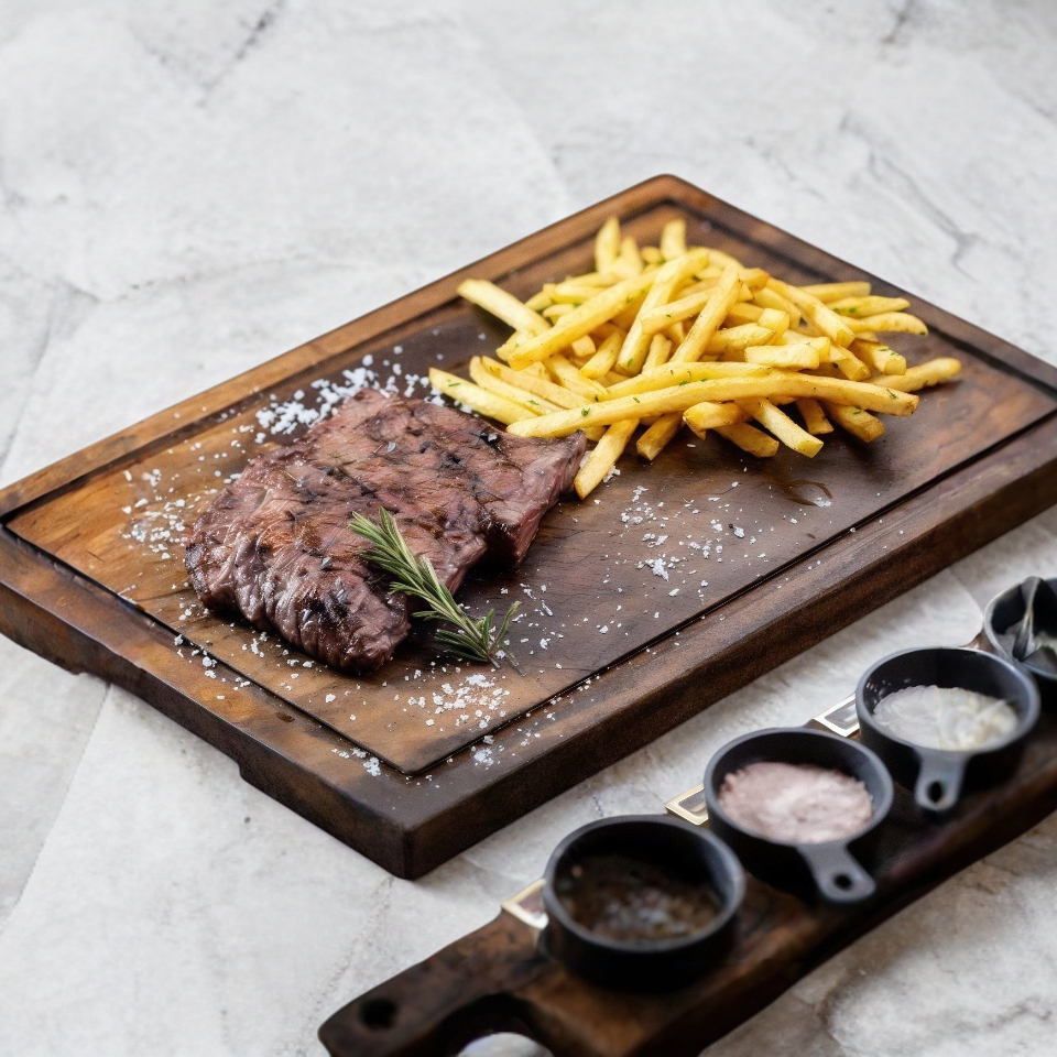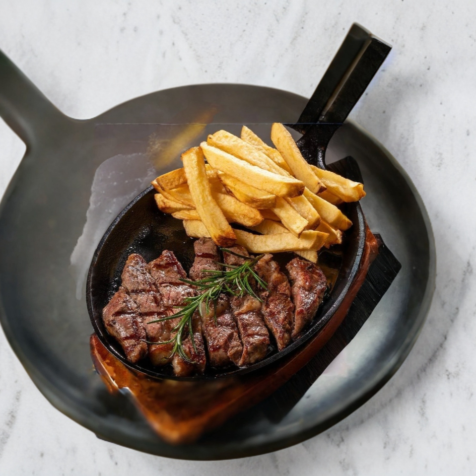 Churrasco 350 G acompañado de papas a la francesa o ensalada mixta.