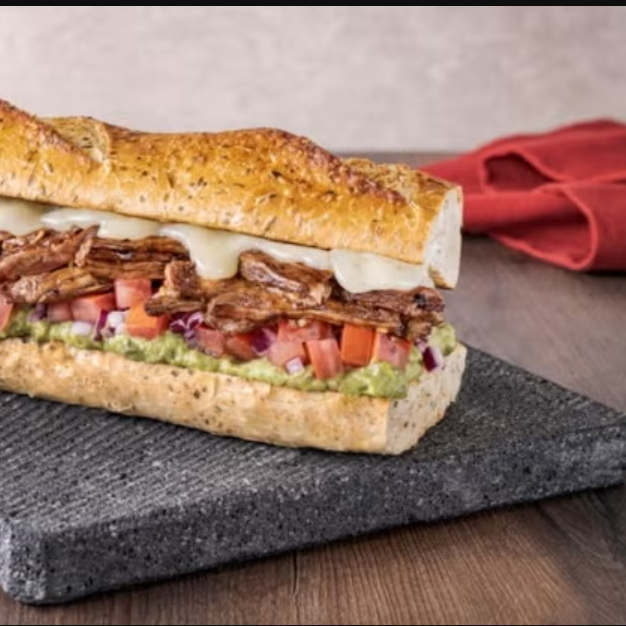 Pan baguette con lechuga, cebolla jitomate y arrachera,