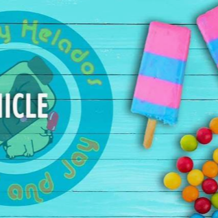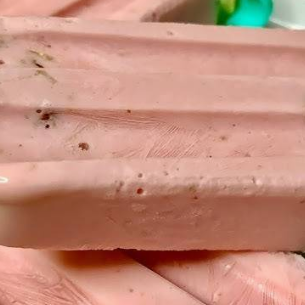 Paleta de crema sabor chicle con franjas rosa y azul.