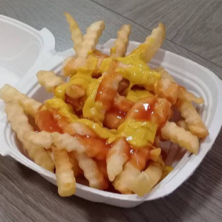 250 g de Papas a la francesa, se acompañan con cátsup, queso y salsa.