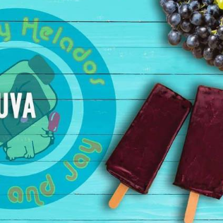 Paleta de agua de grosella con uva, mezcla frutal morada.