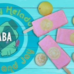 Paleta de agua de guayaba con rebanadas de guayaba.