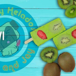 Paleta de agua de kiwi y fresa con rebanadas de fruta.