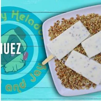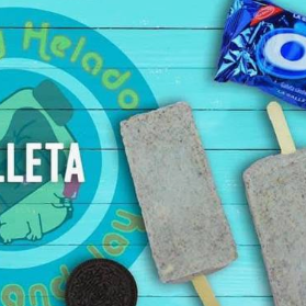 Paleta de crema con queso y cajeta, textura cremosa y toque acaramelado.