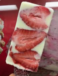 Deliciosa paleta especialidad crema sabor yogurt con fresas.
