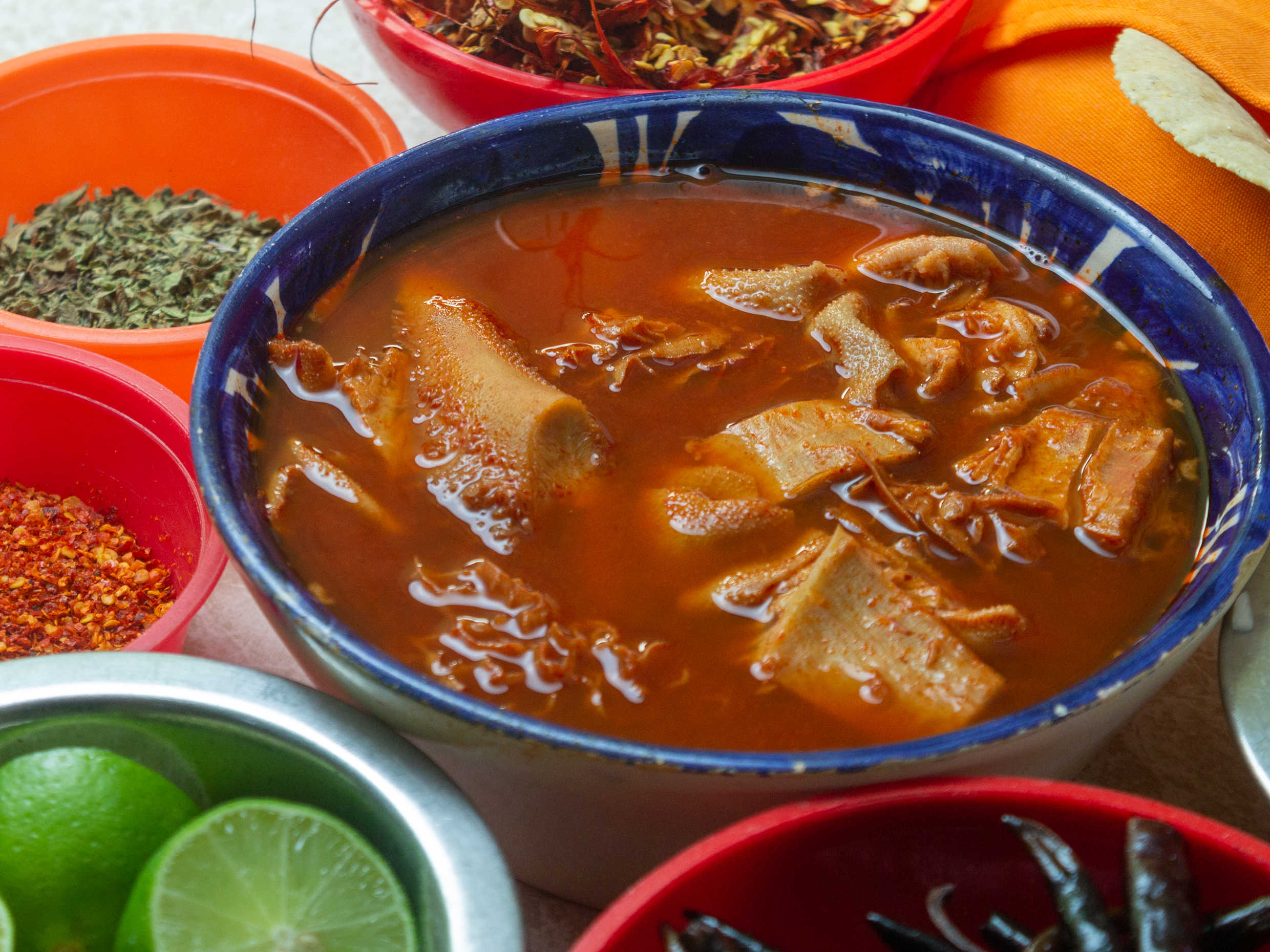 Pancita de 700 ml aprox., ideal para una persona, acompañada de cinco tortillas de maíz hechas a mano. Se puede disfrutar con cuchara o sin cuchara, e incluye orégano, chile piquín, cebolla, limón y otros ingredientes a elección.