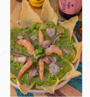 Guacamole con camarón y cebollita morada, muy al estilo de los #señoresdelchiltepín. (No lleva pulpo).