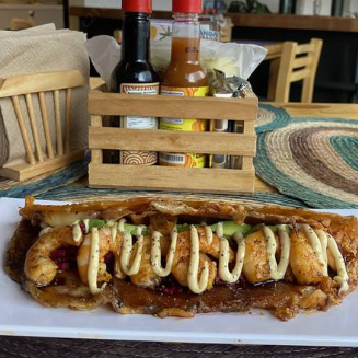 Pueden ser de atún, camarón, o estofado de marlín. Cocidos a la mantequilla. Acompañados de guacamole de la casa, cebolla caramelizada, nuestra mayonesa de chiltepín tatemado y costra de queso sobre una tostada de maíz.