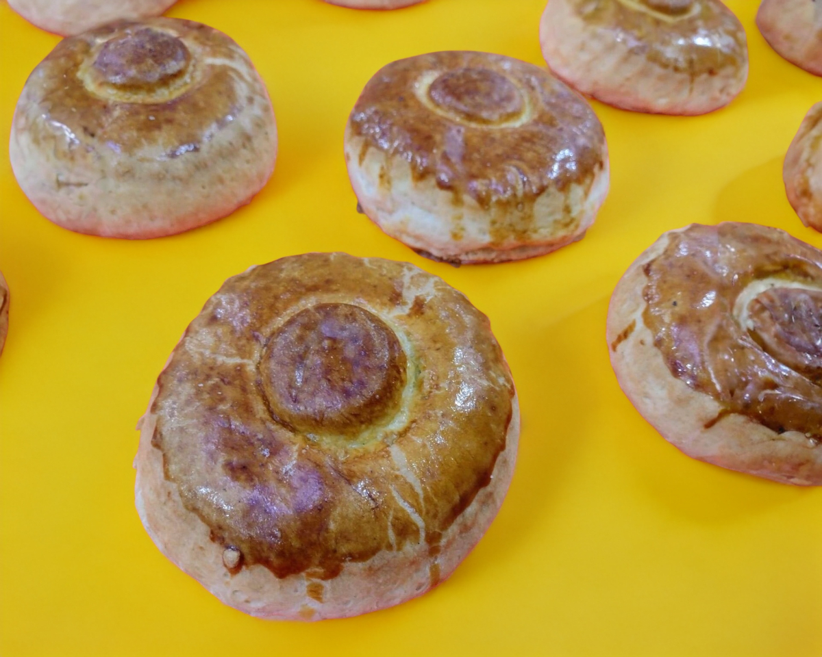 Pasta feite rellena de queso Philadelphia y mermelada de frambuesa.
