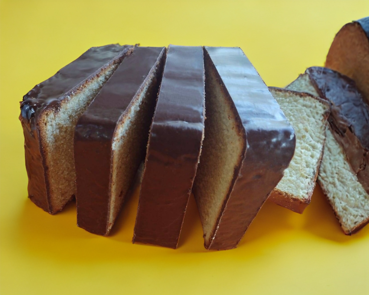 Doble galleta rellena con chantilly cubierta de chocolate y chochitos