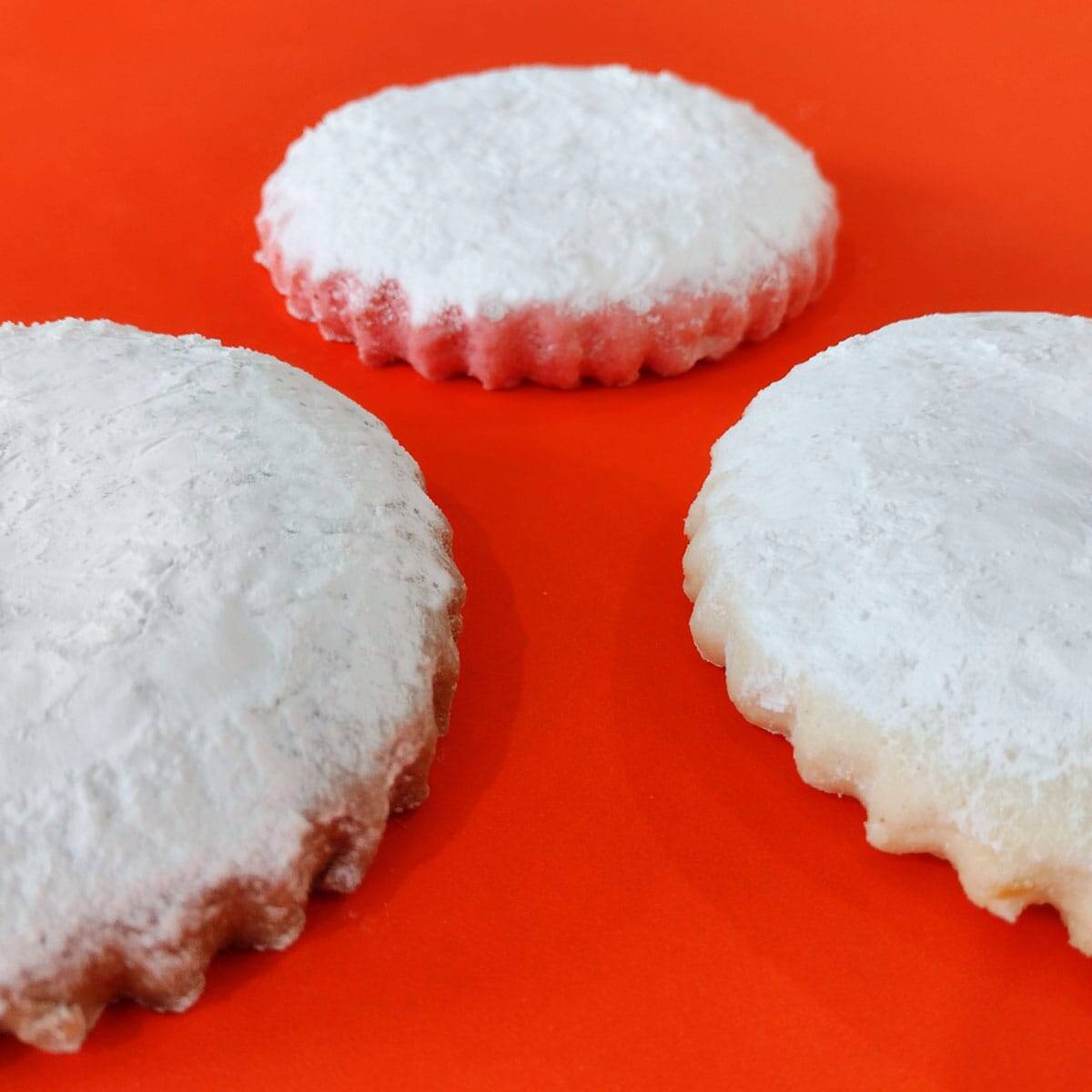 Polvorón sabores fresa, vainilla o chocolate cubiertas de azúcar glass