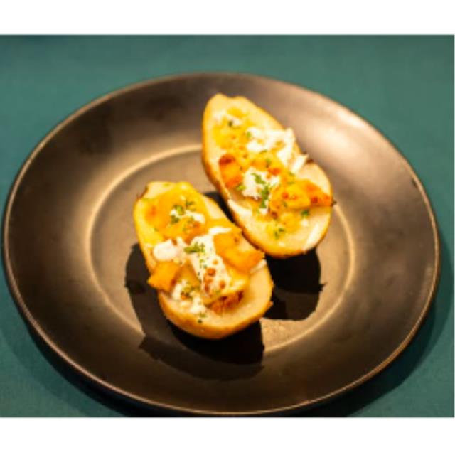 Papa al horno con crema, cebollín y nuestro queso mozzarella, sin duda, un clásico
