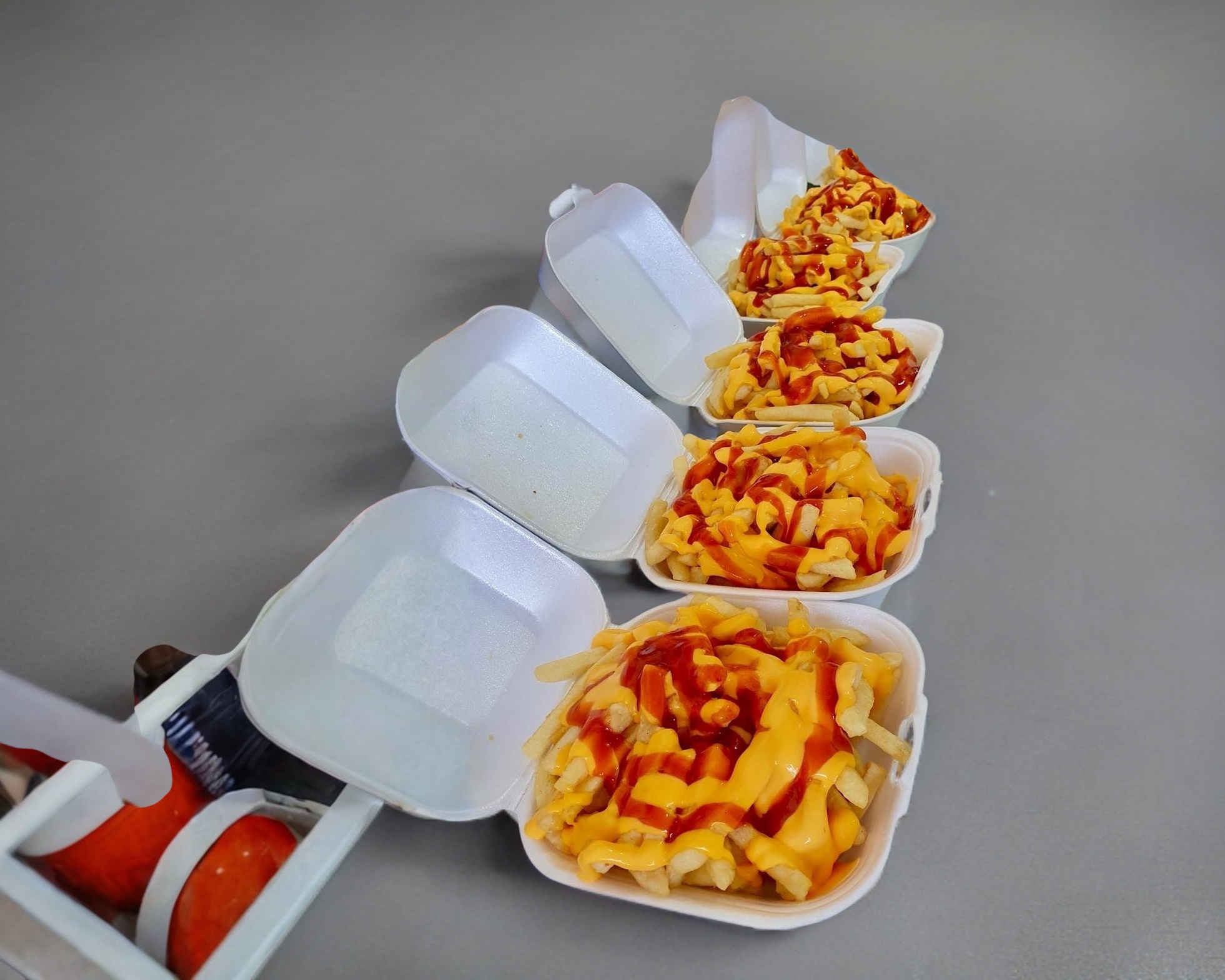 Papas de tu elección, gomitas, salsa tipo inglesa, salsa tipo maggi, tajín, chamoy, salsa picante de tu elección y limón.