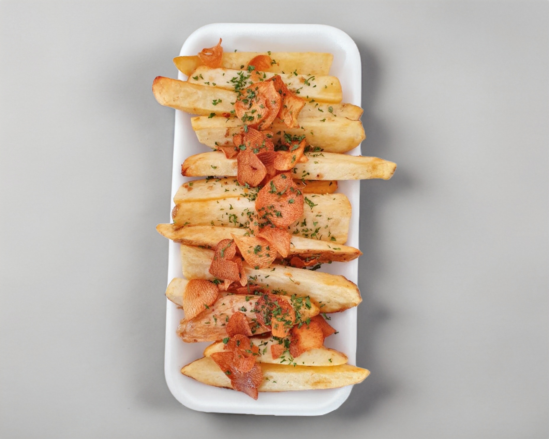 Papas cortadas en gajos, freídas cuidadosamente y sazonadas con algunas de nuestras especies.