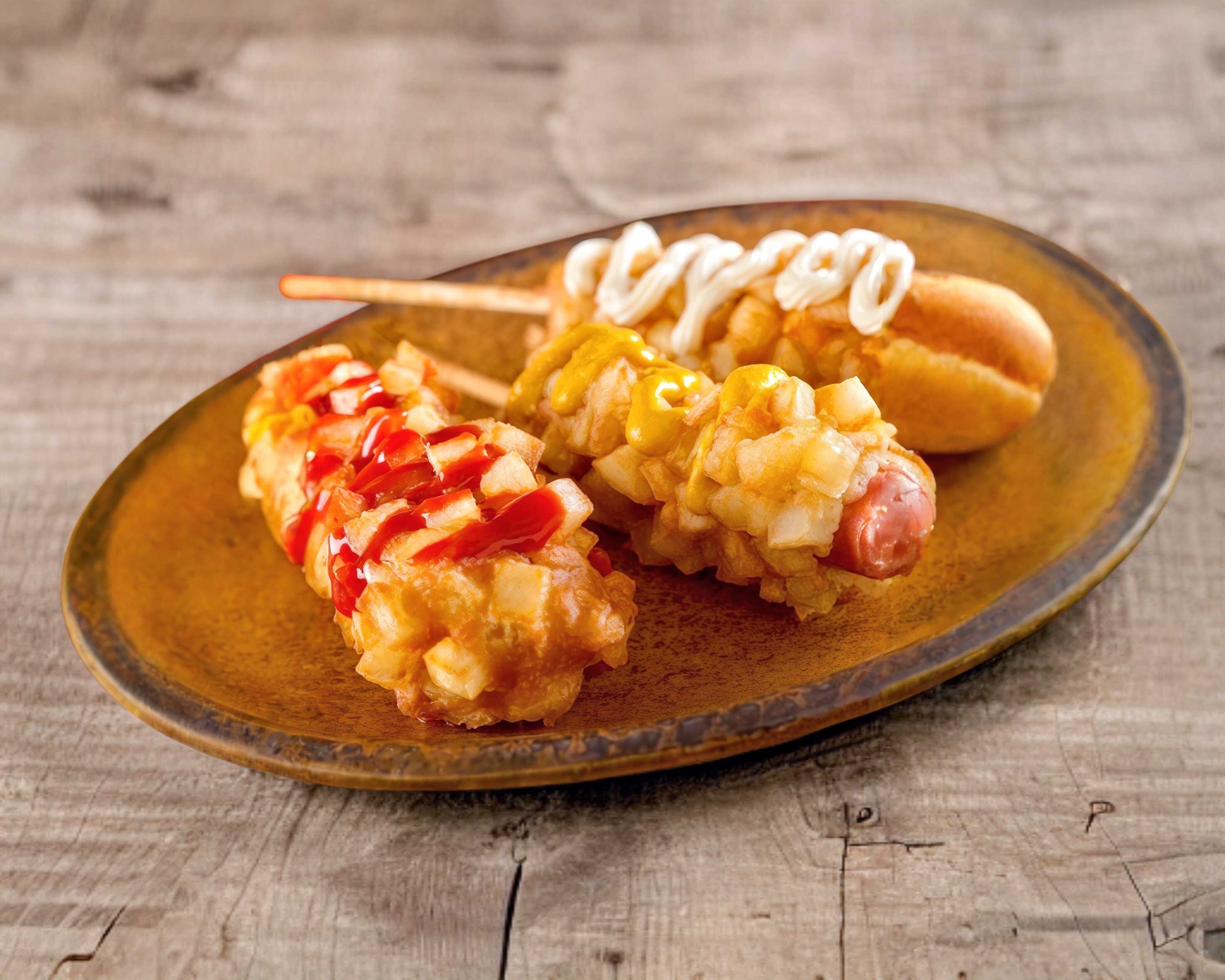 Deliciosa barra de salchicha, queso gouda o mixta empanizada solo con papas a la francesa.