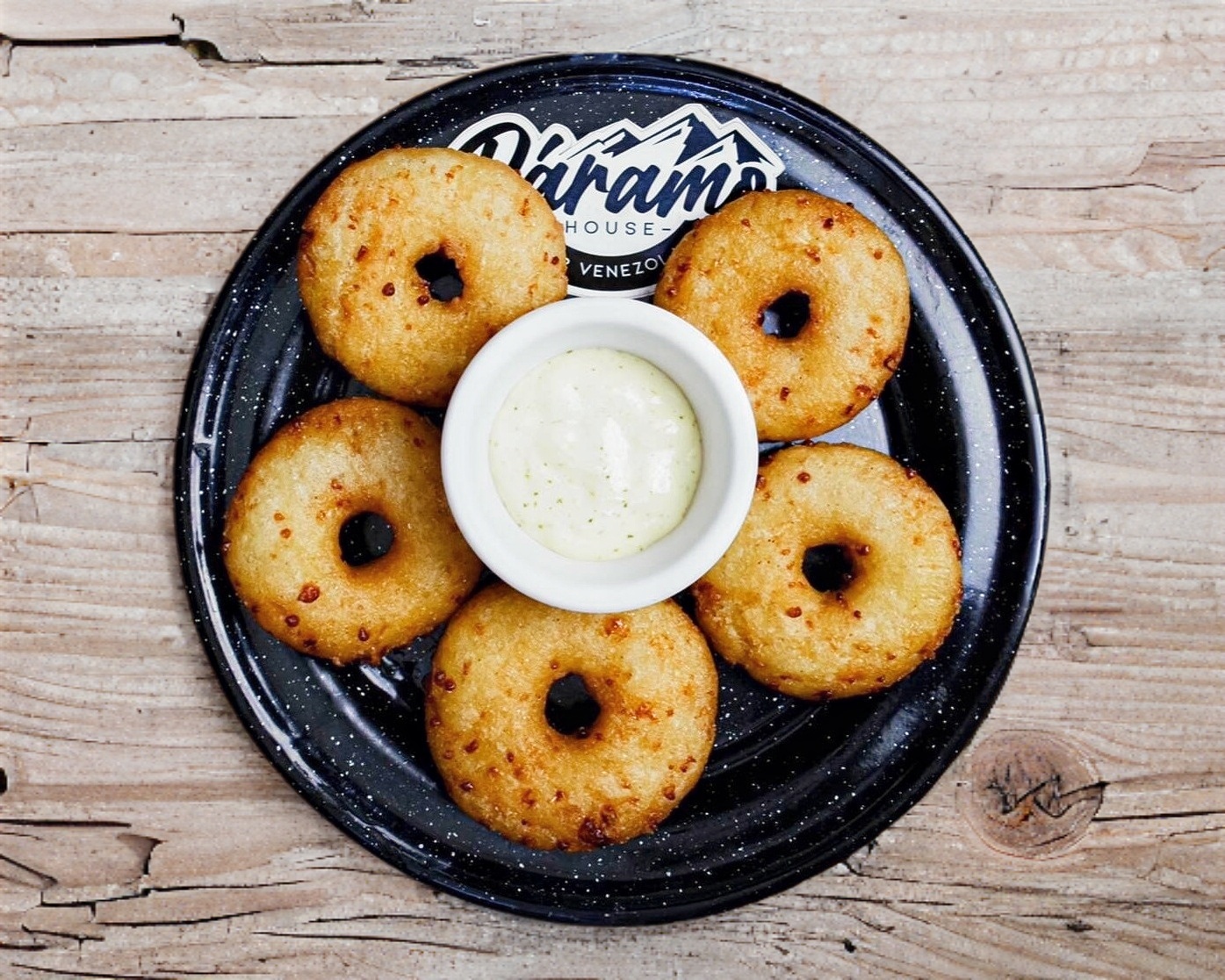 5 Piezas de mini arepas fritas con un toque dulce, acompañadas con crema