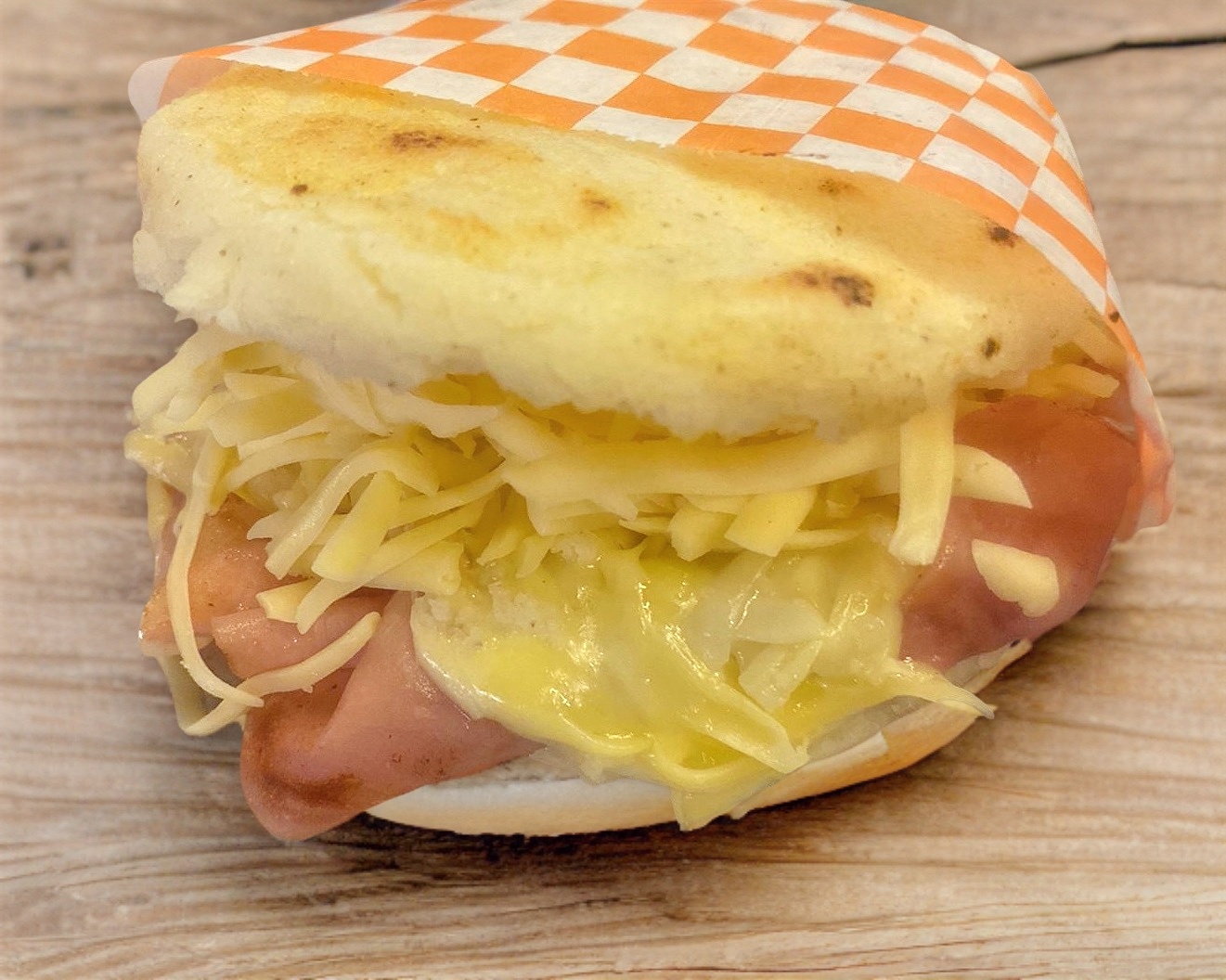 Arepa de jamón y queso.