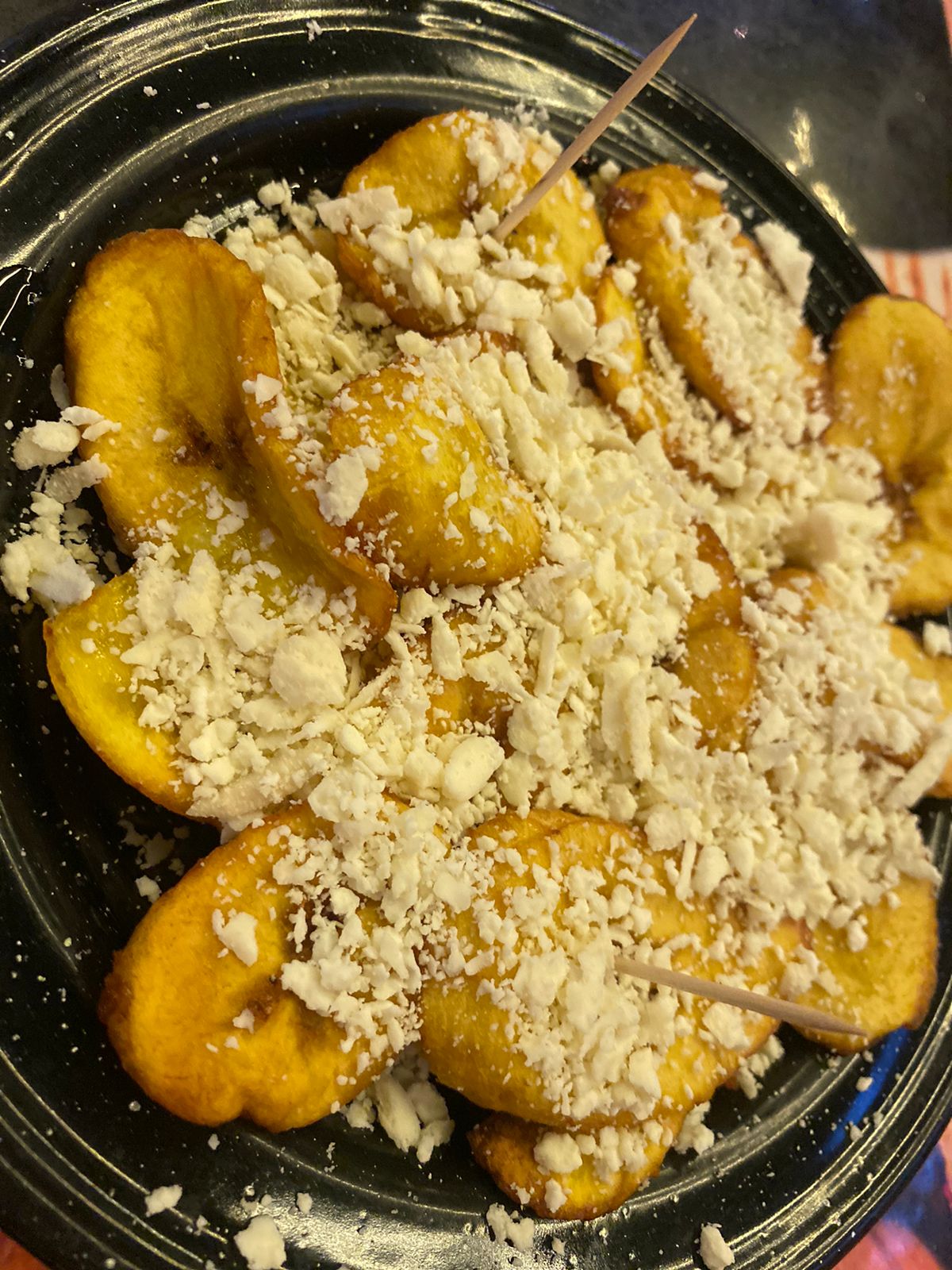 Tajadas de plátano macho maduro con queso blanco rayado