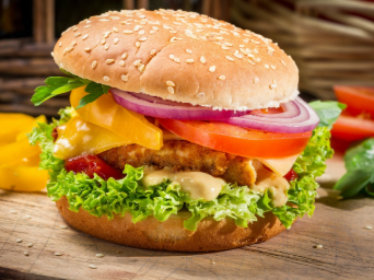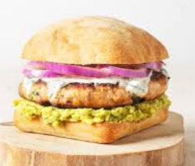 220 g De salmón bañado de vinagre balsámico, queso philadelphia cocido al grill. Todas incluyen jitomate, lechuga, cebolla y mayonesa. Hamburguesas vienen aparte con aderezo, chiles.